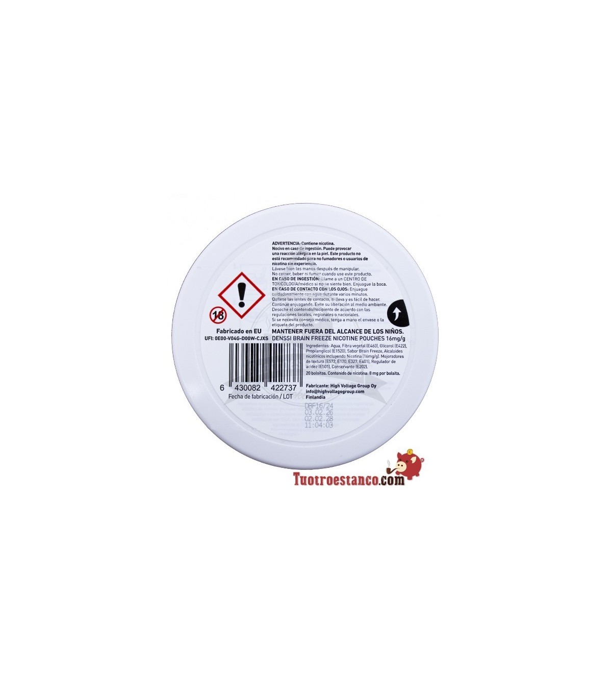 Título: Denssi Brain Freeze — Bolsas de nicotina efecto hielo extremo 16 mg
