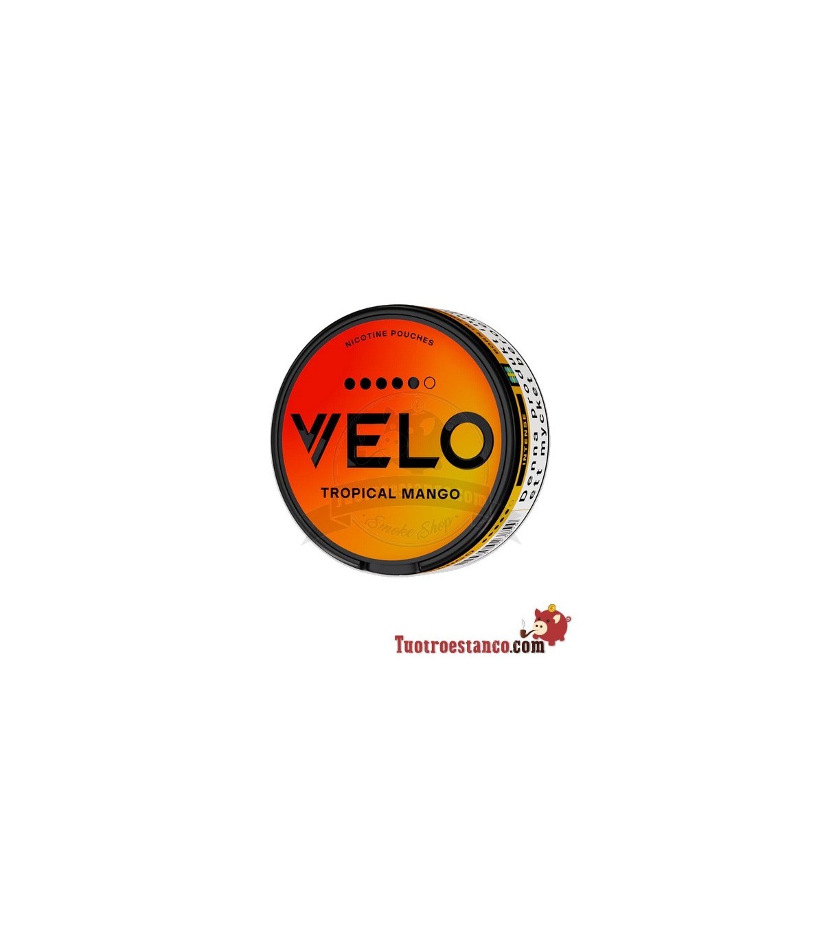 VELO TROPICAL MANGO es una nicotine pouch premium de la marca VELO con un delicioso sabor a mango tropical y una intensidad fuerte de 14mg de nicotina por pouch. Cada lata contiene 20 pouches en formato Slim, ofreciendo una experiencia de nicotina satisfactoria, limpia y completamente discreta.
